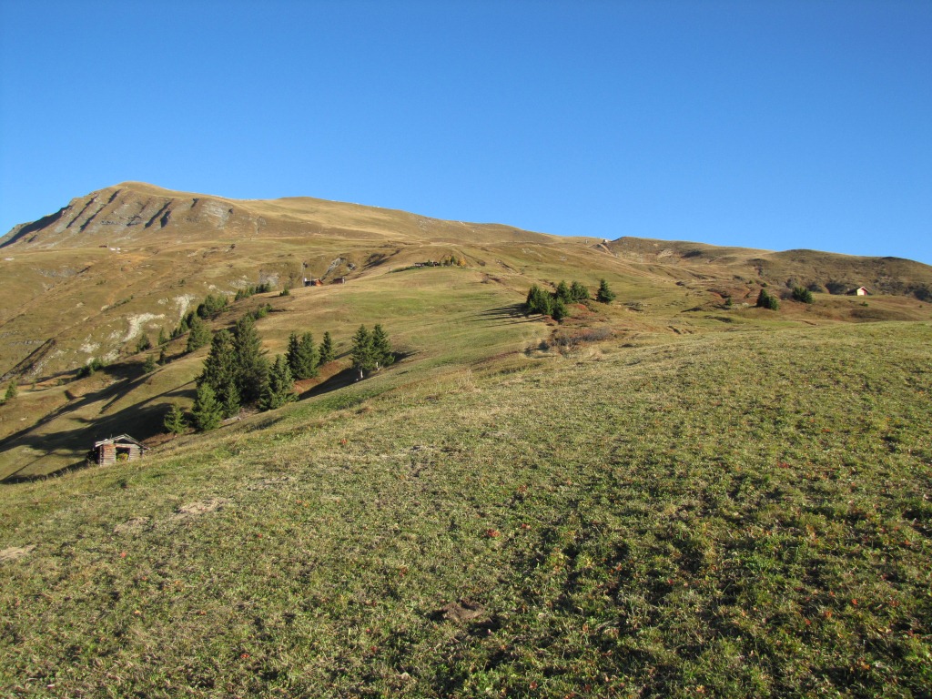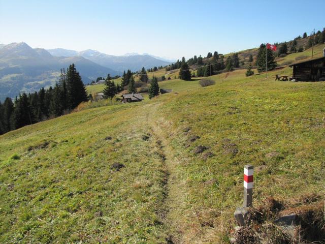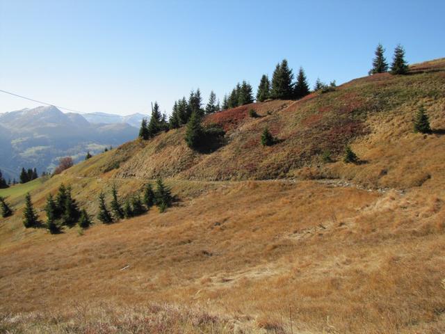 zum teil weglos geht es nun über die Sonnenterrasse des Schanfigg, bei Furgglis abwärts