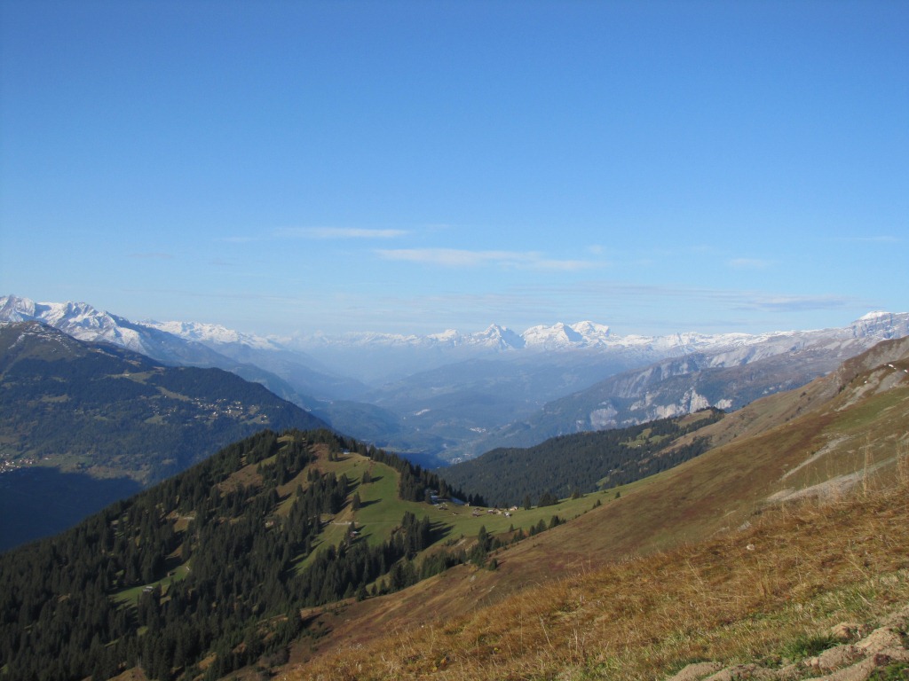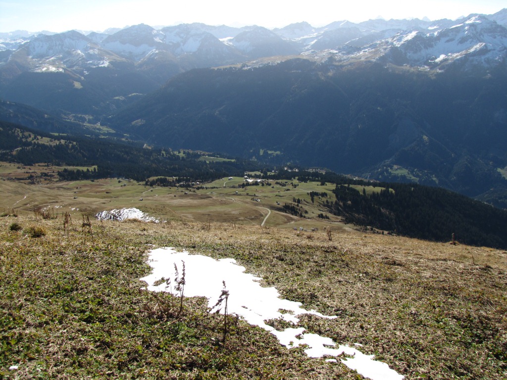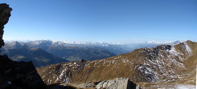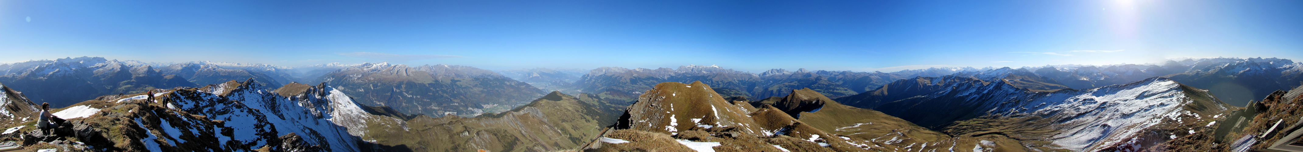 Breitbildfoto. Der Blick reicht bis in die Surselva. Was für ein Prachtswetter