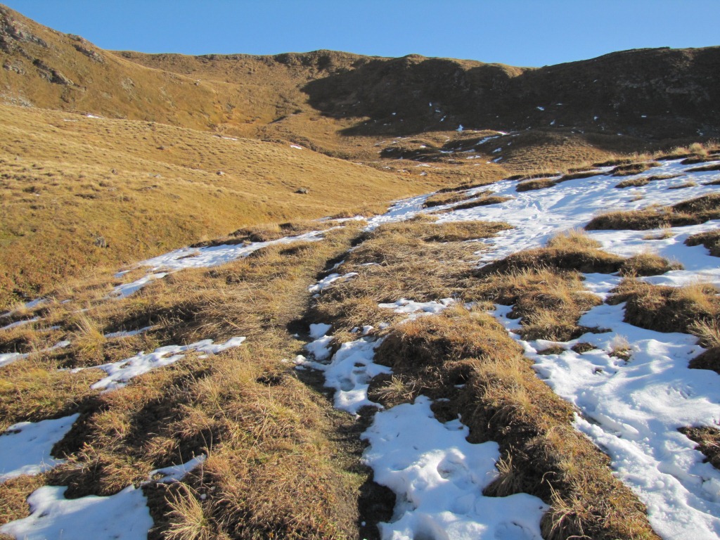 der Weg führt weiter aufwärts zum Sattel der den Hochwang mit dem Ratosen Stein verbindet