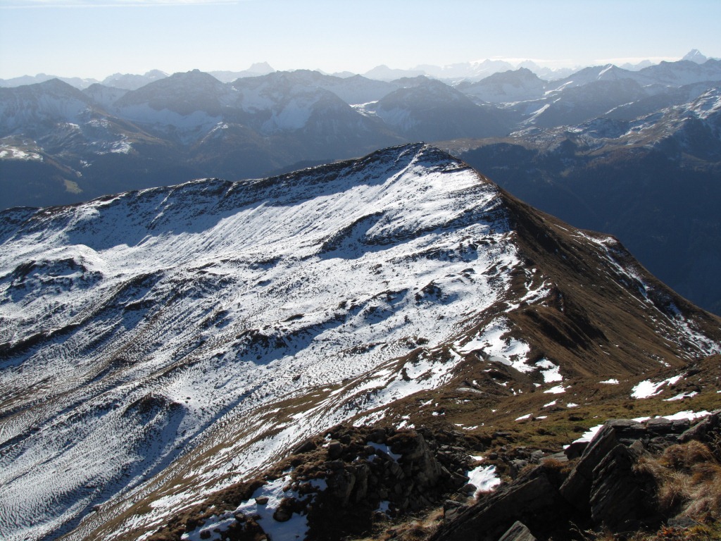 auf dem Grat. Links das Prättigau, rechts das Schanfigg