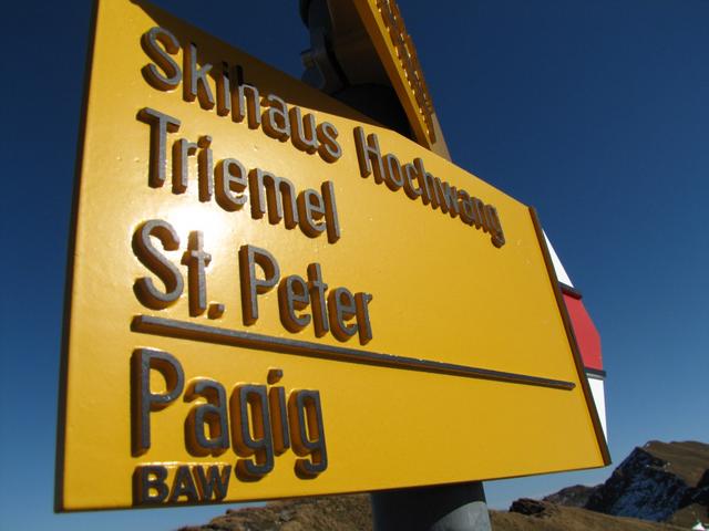 Wegweiser auf Pagiger Bleis 2135 m.ü.M.