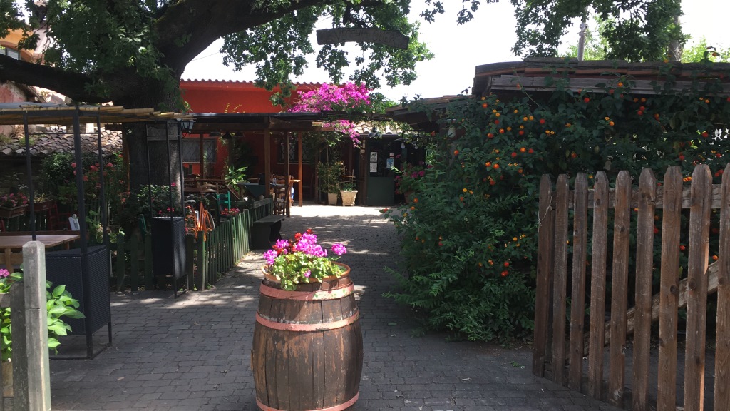 eine geöffnete Bar mit einer Terrasse, lädt uns zu einer erholsamen Pause ein