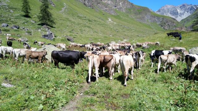 nicht nur wir, sondern auch hunderte von Kühen, laufen taleinwärts