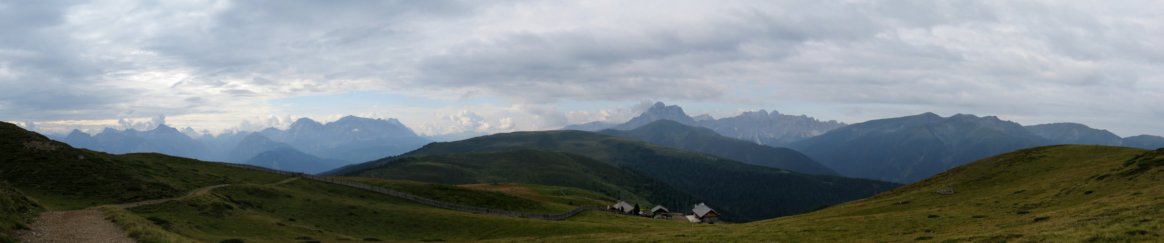 Breitbildfoto von der Alpe di Luson mit Blick Richtung Peitlerkofel