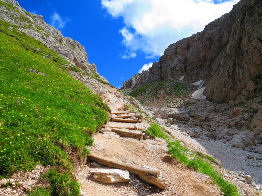 der Pfad führt nun praktisch auf direktem Weg hinauf zur Scharte