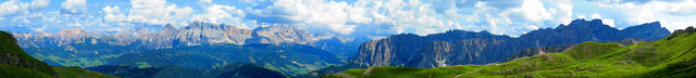sehr schönes Breitbildfoto der Fanes Gruppe links und die Puez Gruppe rechts