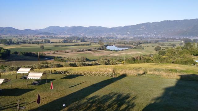...sondern auch die schöne Aussicht auf Contigliano und die Ebene des Rietital