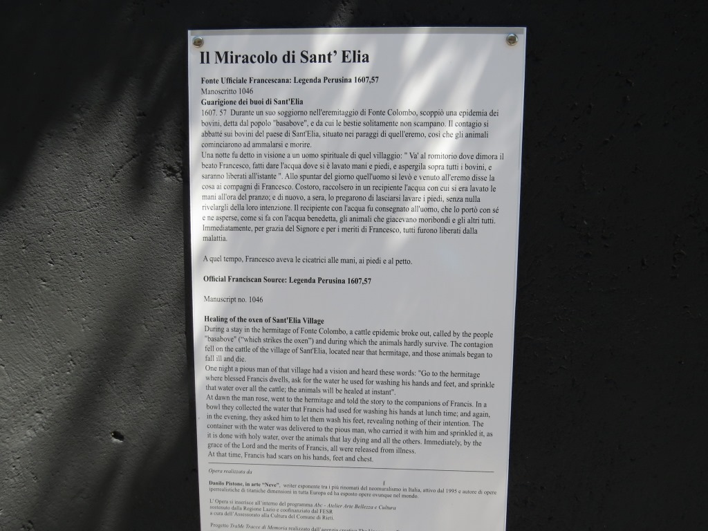 der Santuario di Fonte Colombo erhielt den Namen wegen der "Taubenquelle" die vorher erwähnt wurde