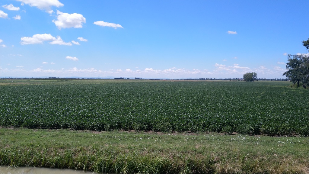 schnurgerade führt die Strasse aus Ferrara heraus. Die Via Romea folgt der Strasse... Datum 12.05.2023