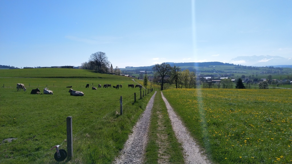 Satte Äcker, Wiesen und Felder säumen den Weg