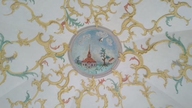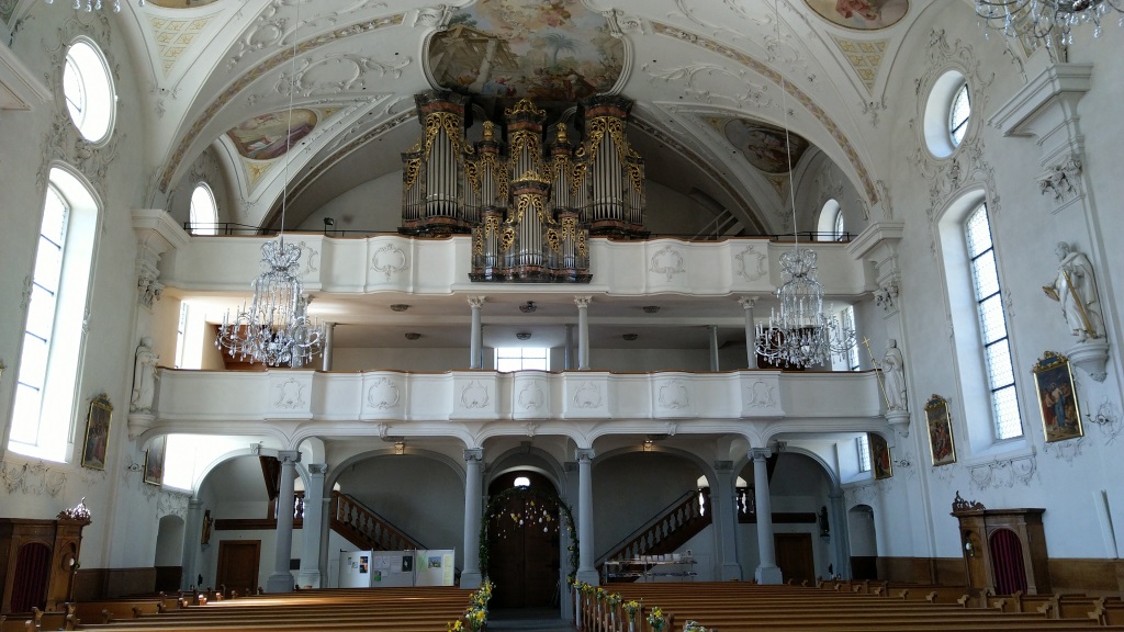 der schöne barocke Kirchenraum mit den markanten Deckengemälden