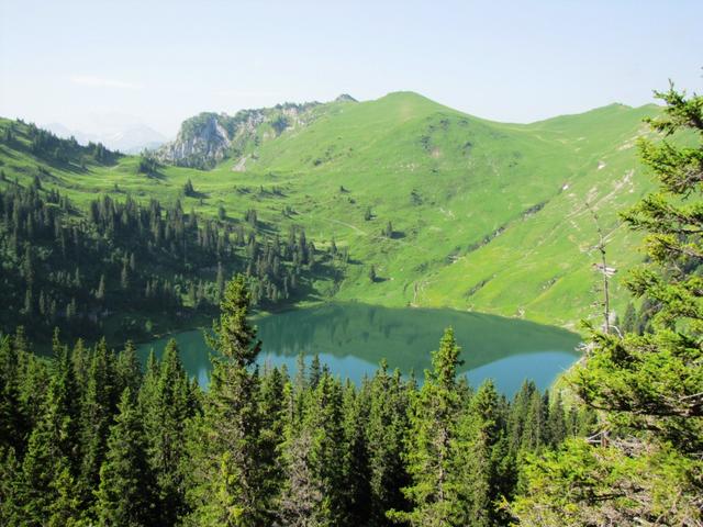 Tiefblick zum Oberstockensee. Von hier oben sieht der See wie ein Vulkankrater aus Datum 11.03.2013