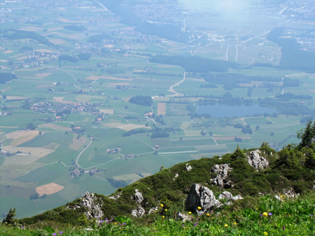 Tiefblick nach Uebeschi und Amsoldingen. Dort waren wir auch schon auf dem Jakobsweg Datum 12.03.2013