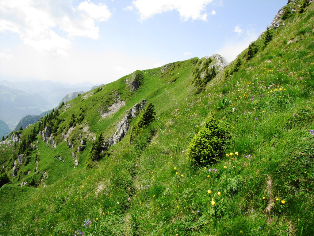 über Grashänge mit unzähligen Blumen Datum 12.03.2013