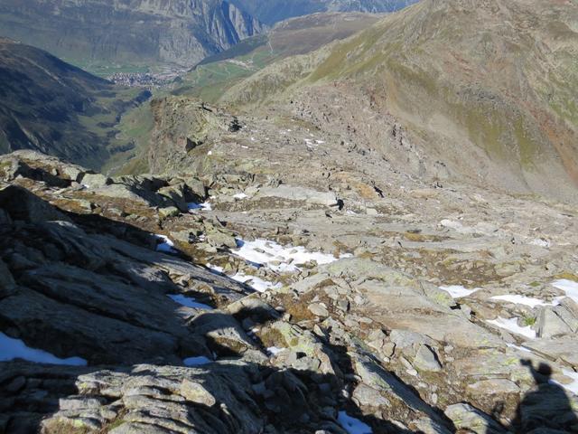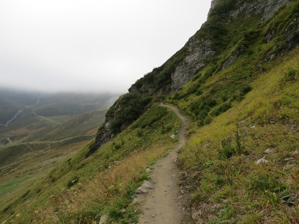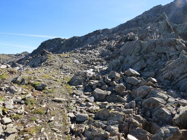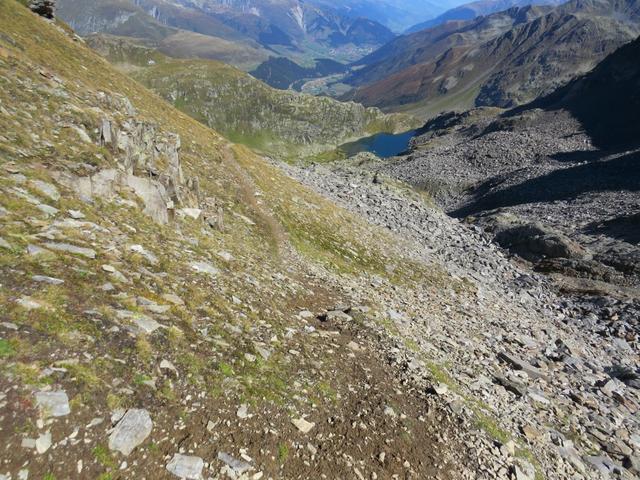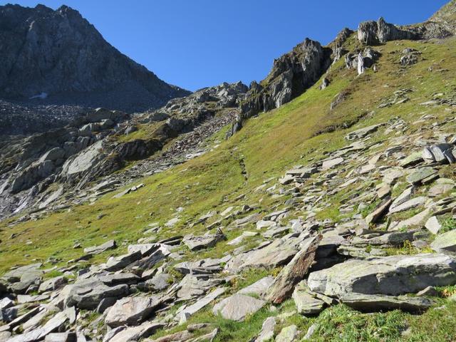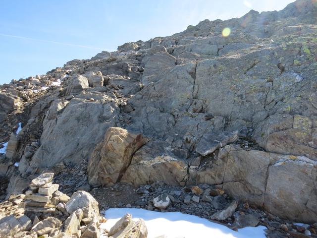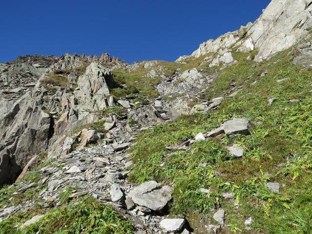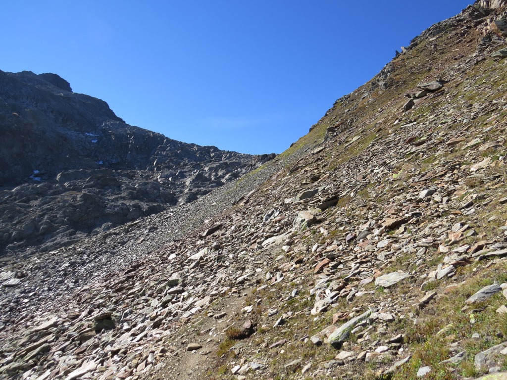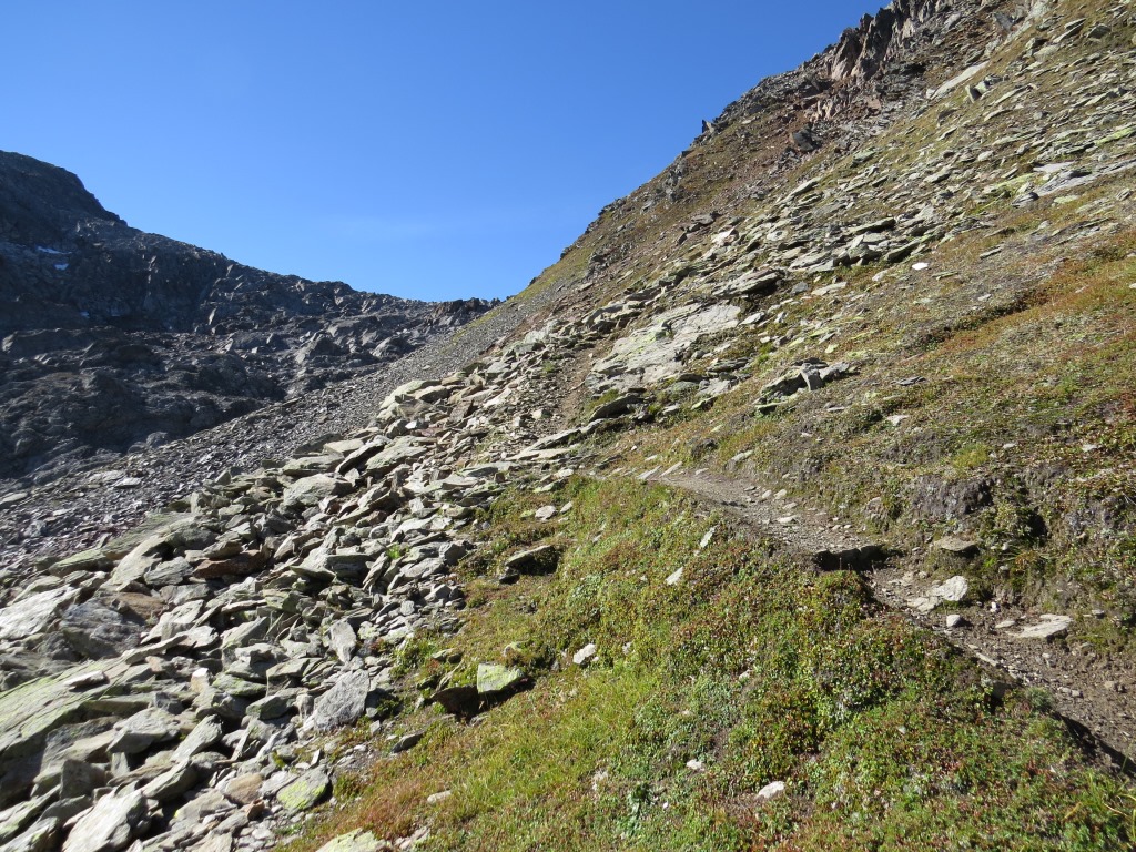 ...geht es an der steil abfallenden Bergflanke des Pazolastock...