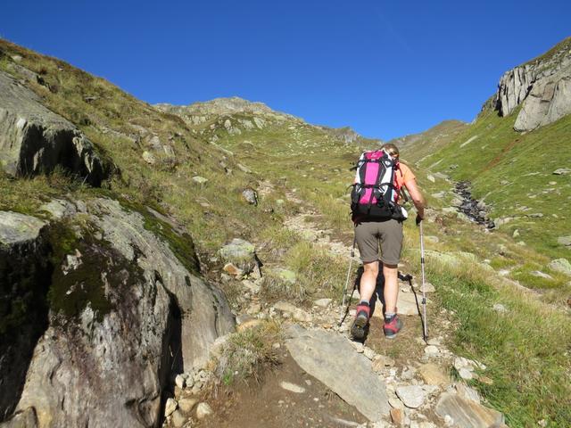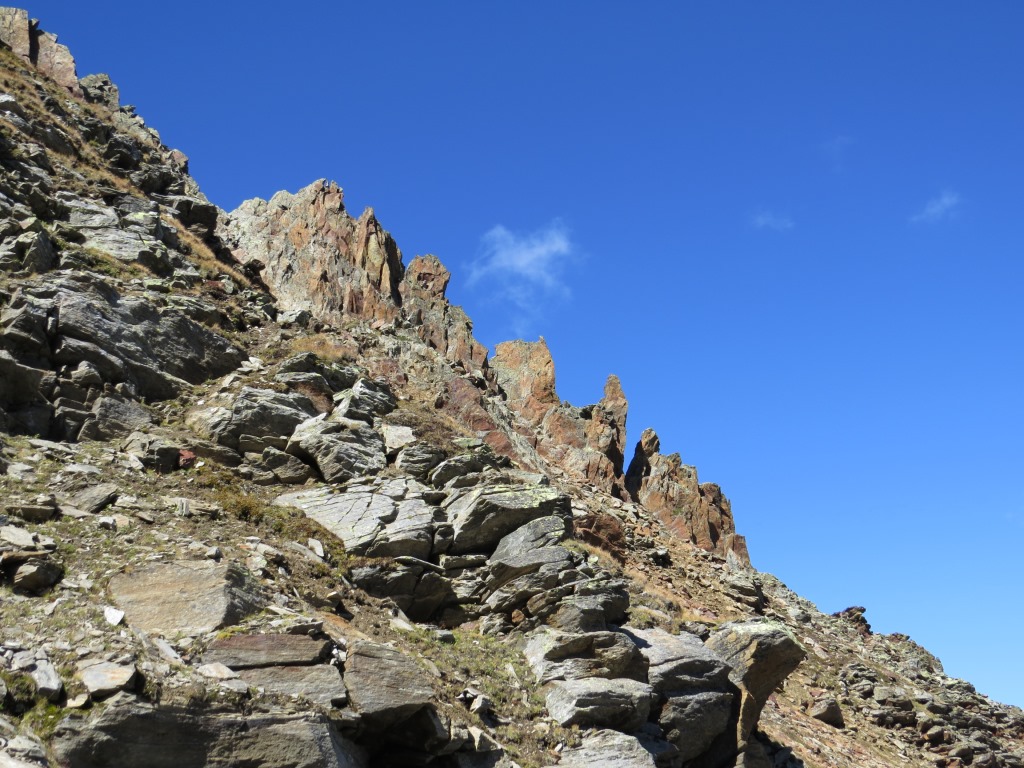 über einen gut angelegten und markierten Wanderweg erreichen wir über steile Flanken einen kleinen Übergang 2351 m.ü.M.