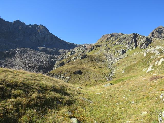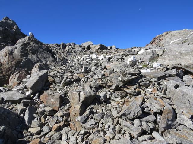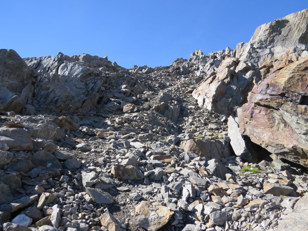 ...wo wir rechts über den Schuttkessel, Richtung Lai da Tuma abbiegen