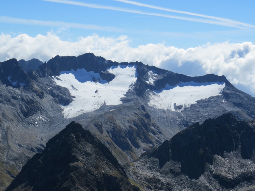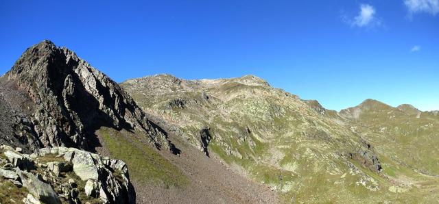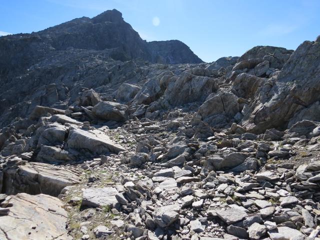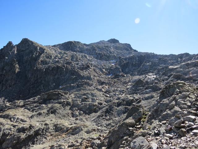 in einem weiten Rechtsbogen wandern wir um den Pazolastock, und plötzlich taucht vor uns der Piz Badus auf
