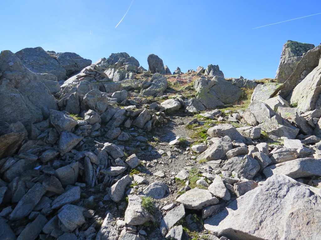 ein ausgetretener Pfad führt uns zu der Weggabelung Punkt 2627 m.ü.M.