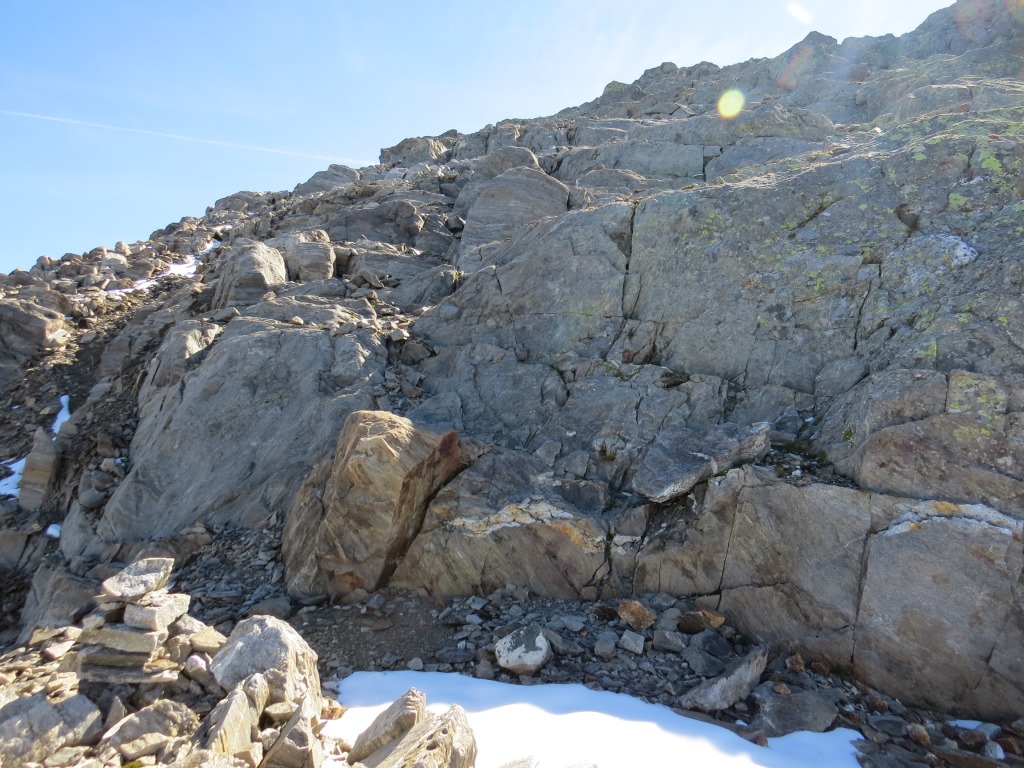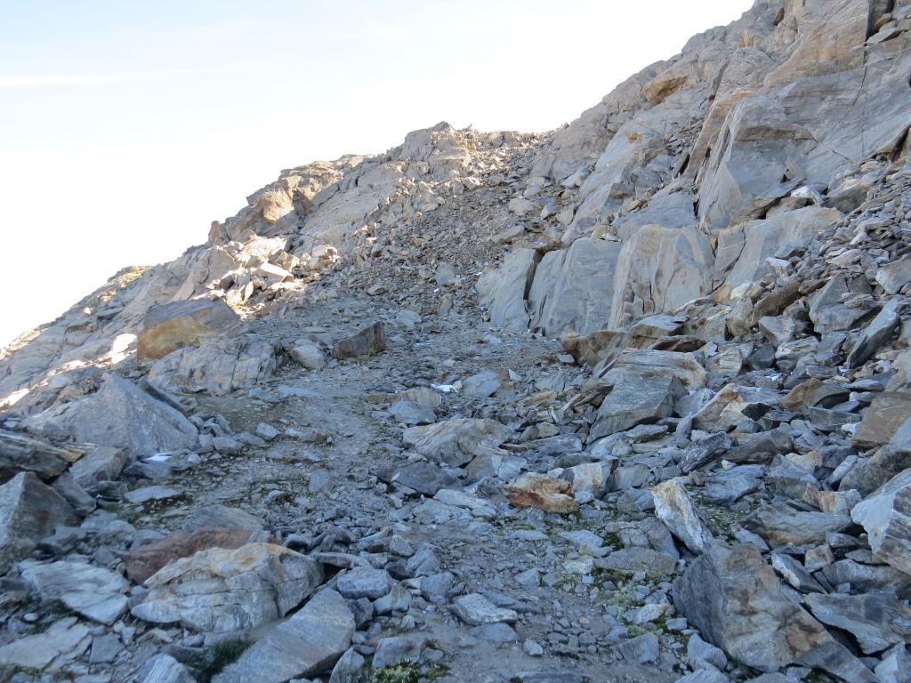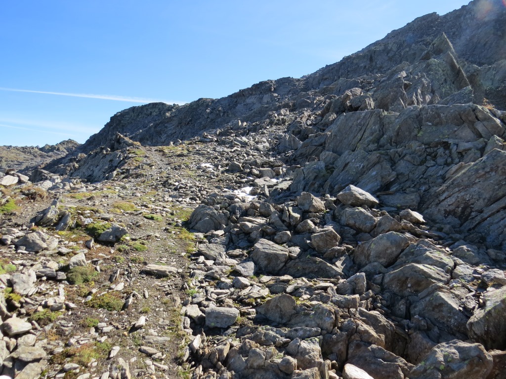 unter dem Gipfelaufbau quert der Pfad dann nach links...