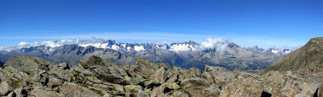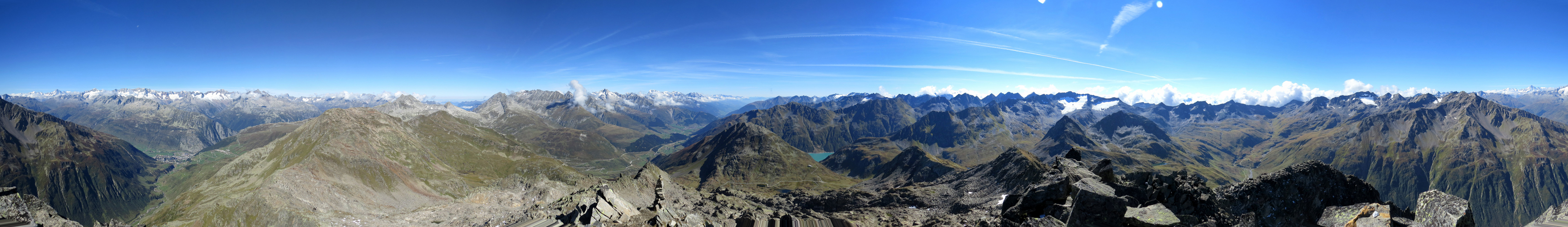 sehr schönes Breitbildfoto mit Blick in die Bündner und Tessiner Berge. Maighels, Pizzo Centrale usw.