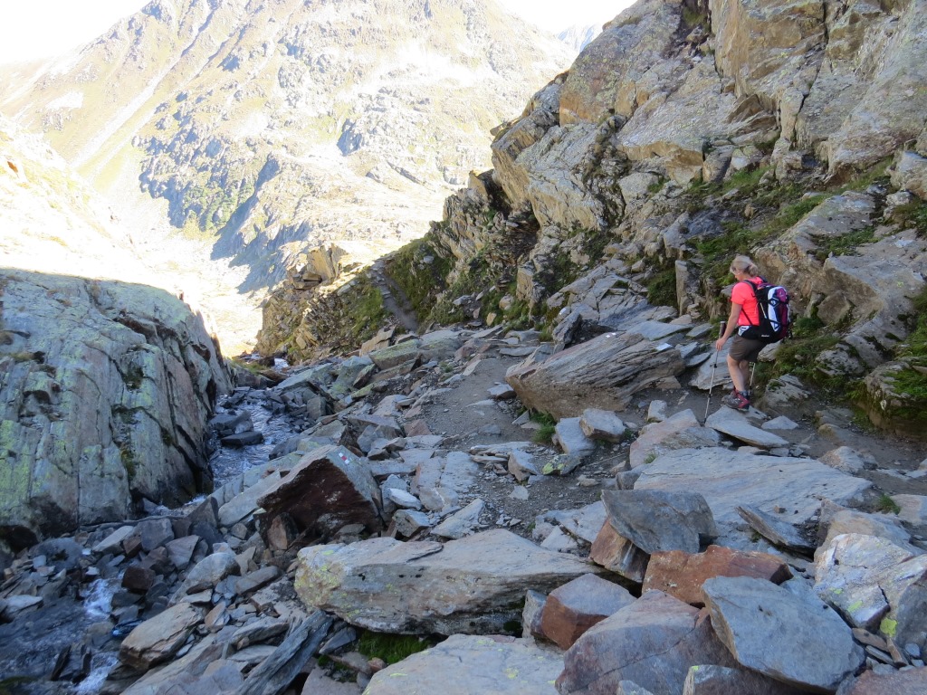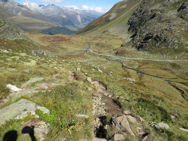 hier biegen wir links ab, und nehmen einen anderen Weg für den weiteren Abstieg unter die Füsse