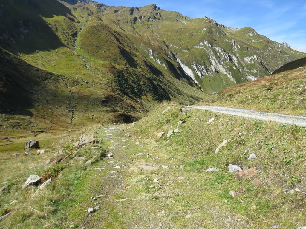 der Wanderweg mündet bei Punkt 2174 m.ü.M. in die Fahrstrasse