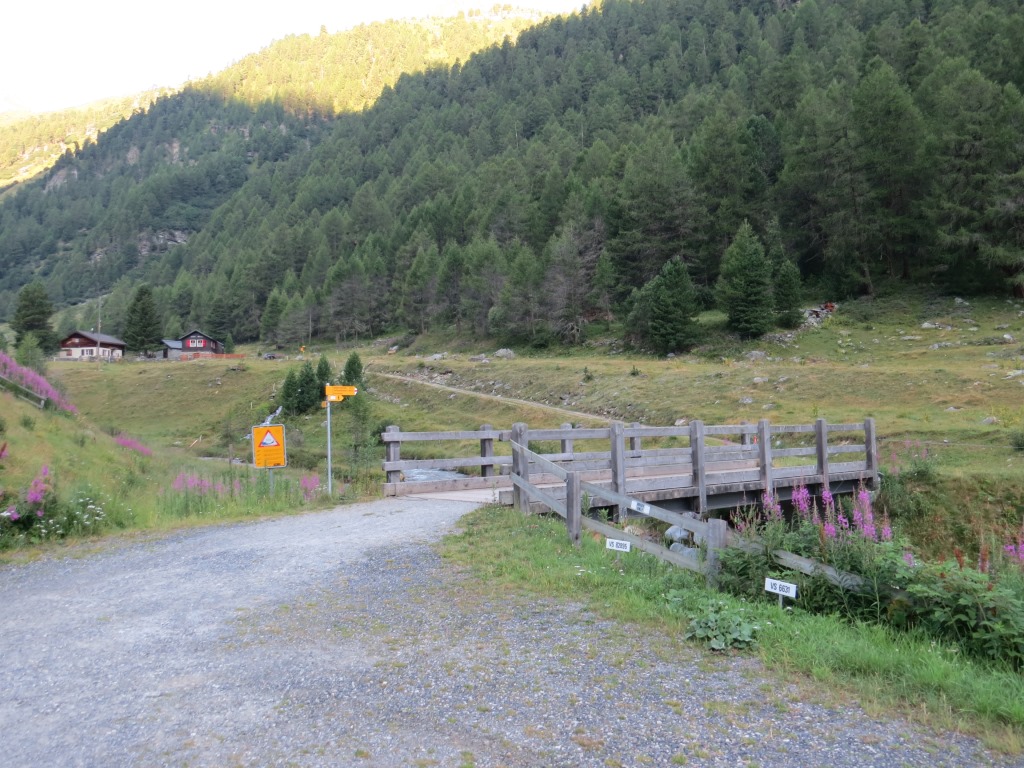 ...zu den Chalets von Gruben-Meiden, wo wir über eine Brücke die Turtmänna überschreiten Datum 07.03.2019