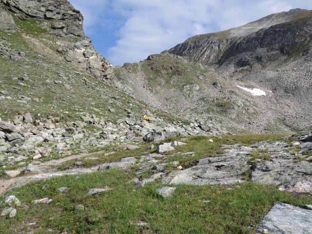 auf der Westseite des Jochs steigen wir durch Schutt... Datum 09.03.2019