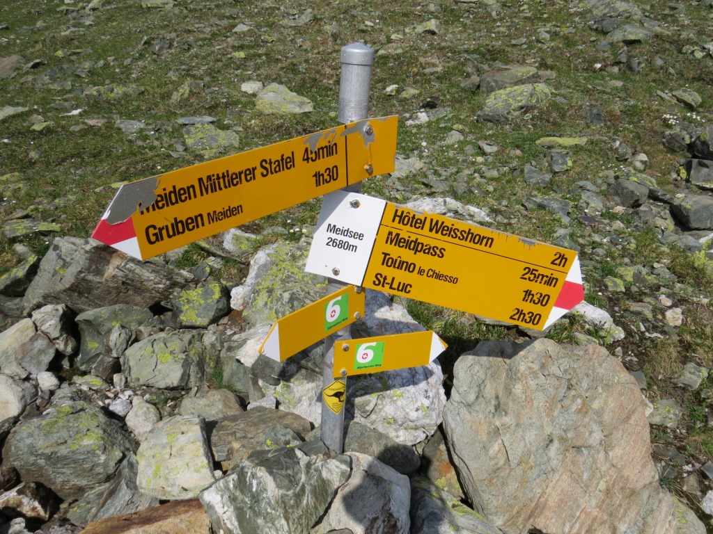 Wegweiser auf Meiden Oberstafel 2334 m.ü.M. Datum 07.03.2019