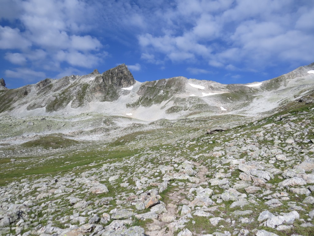 gut ersichtlich der Bergpfad der auf den Meidpass hinauf führt Datum 07.03.2019