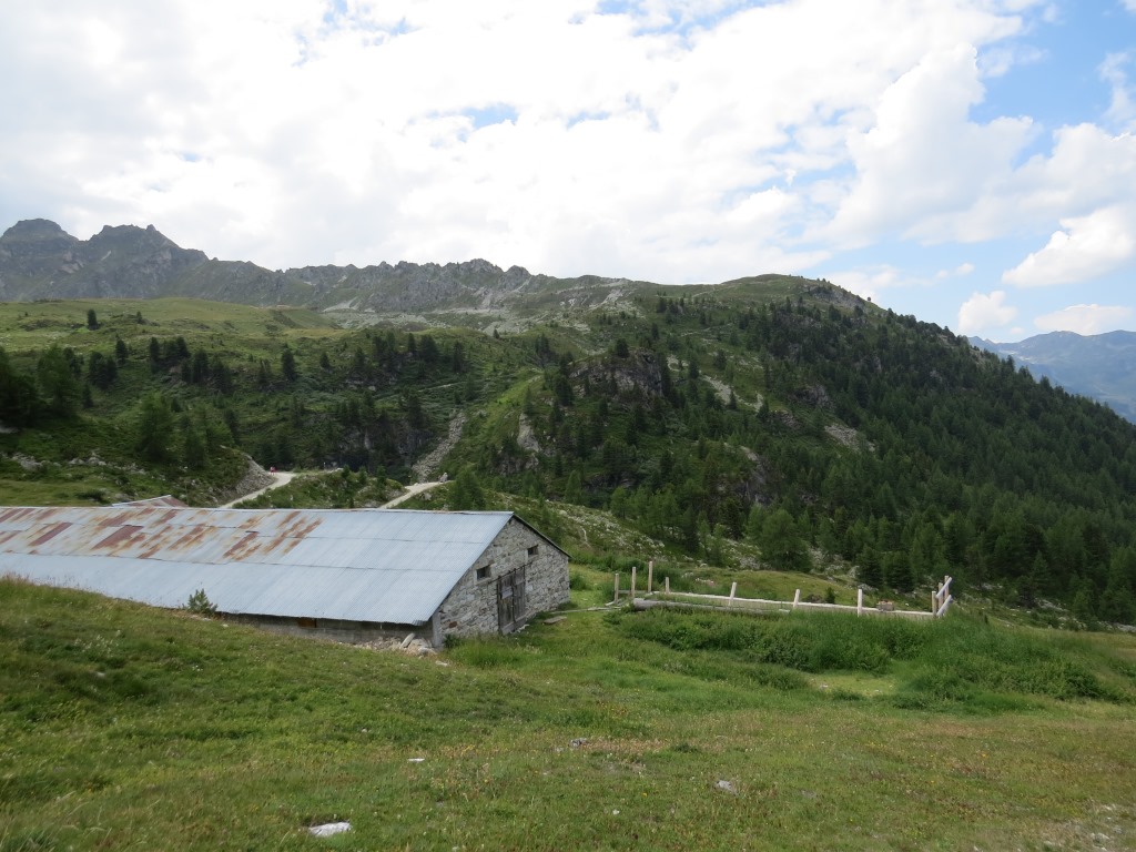 wir wandern weiter abwärts und erreichen endlich den grossen Stall von Le Chiesso - Combavert 2198 m.ü.M. Datum 10.03.2019