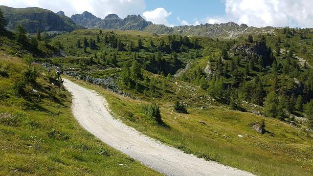 von Chiesso geht es nun weiter nach Tignousa. Bei der Weggabelung 2169 m.ü.M. wählen wir die obere breite Alpstrasse... Datum 10.03.2019