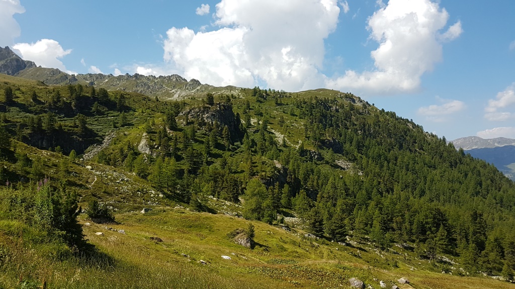 Blick zurück und hinauf zur Bella Tola mit seinem weisen Gestein. Schön war es als wird dort oben standen Datum 09.03.2019