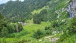 vom Übergang ist gut die Untere Hausstattalm mit der Tutzinger Hütte ersichtlich