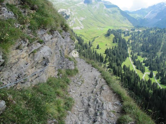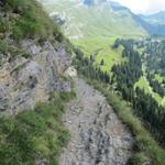 das Teilstück bei der Spycherflue ist ausgesetzt. Hier sollte man wieder auf den Weg achten