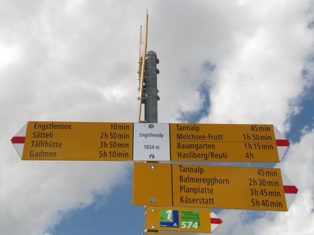 Wegweiser bei der Engstlenalp 1834 m.ü.M.