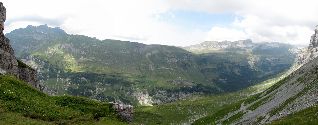 Breitbildfoto vom Sätteli aus gesehen Richtung Gental