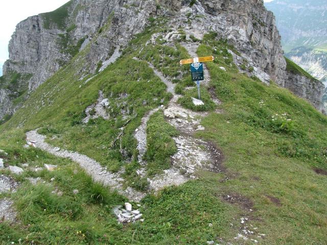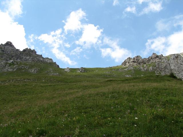 bei Punkt 1842 m.ü.M. beginnt der Aufstieg zum Sätteli