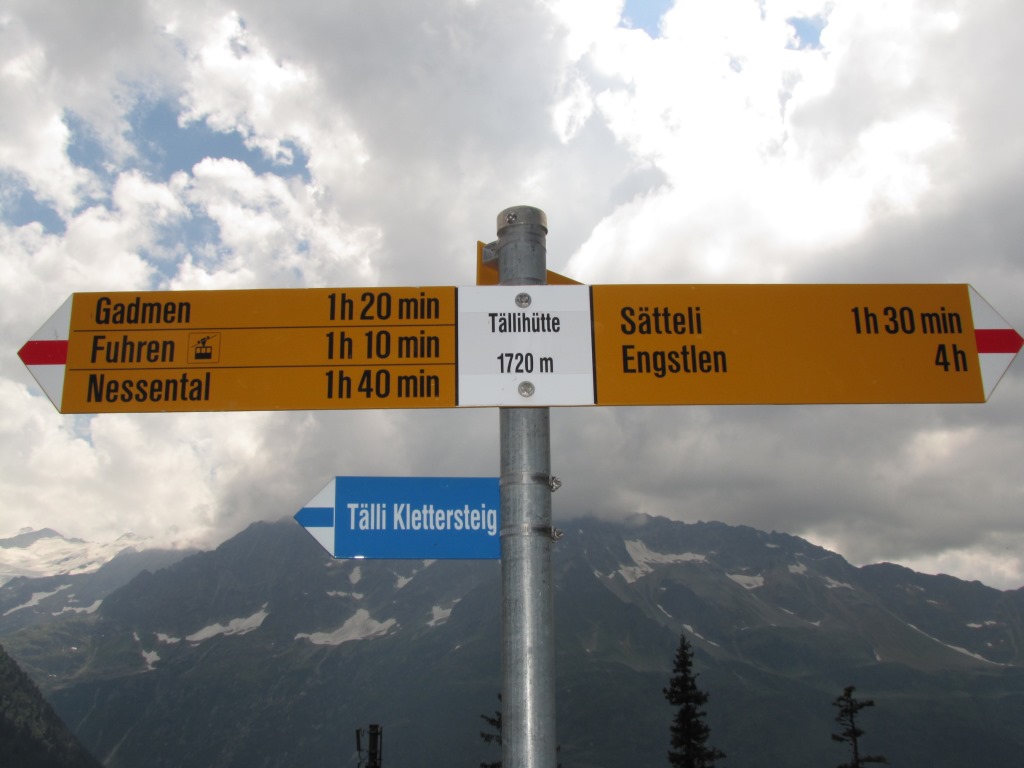 Wegweiser bei der Tällihütte 1720 m.ü.M.