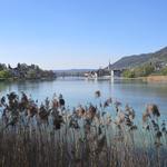 träge fliesst der Rhein rechts von uns in den Untersee Datum 11.04.2017