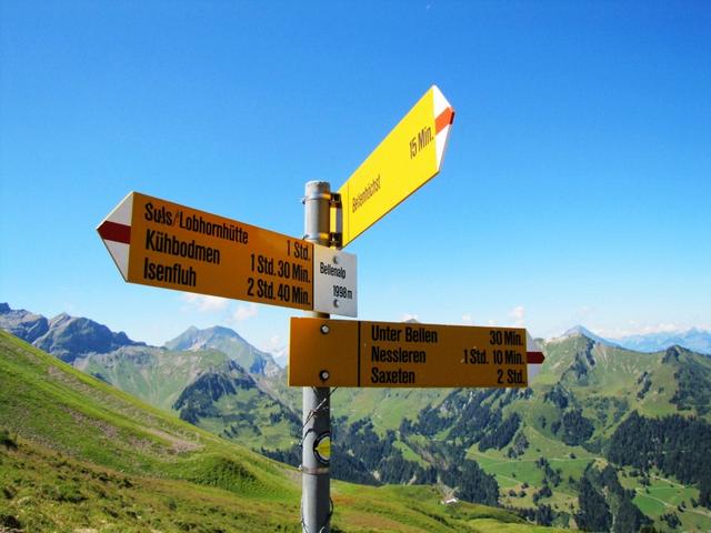 Wegkreuzung auf dem Sattel bei der Bällenalp 1998 m.ü.M. Datum 09.04.2013