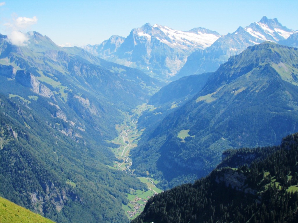 Blick in das Tal der Lütschine mit Grindelwald, Wetterhorn, Ewigschneehorn, Schreckhorn und Lauteraarhorn Datum 09.04.2013