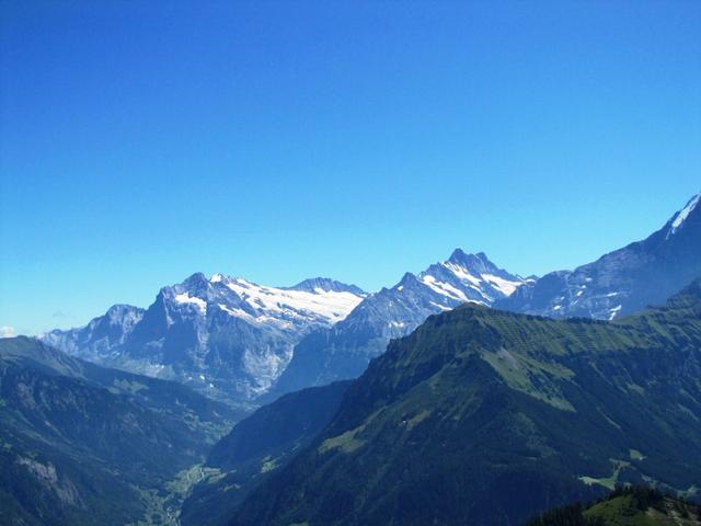was für eine Aussicht Wetterhorn, Ewigschneehorn, Schreckhorn, Lauteraarhorn, Eiger, Mönch und Jungfrau Datum 09.04.2013