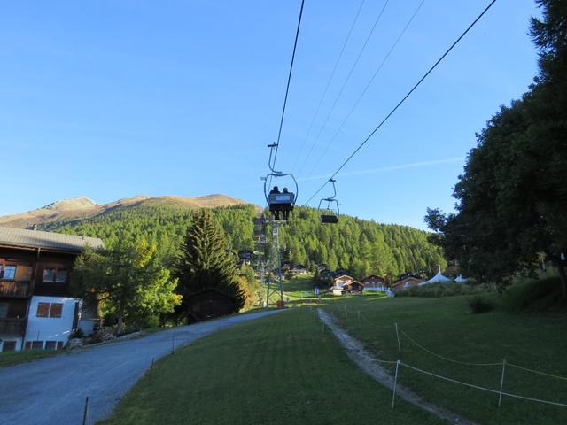 von Furggulti 2564 m.ü.M. sind wir mit der Sesselbahn hinabgeschwebt nach Flesche
