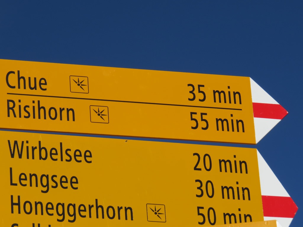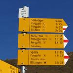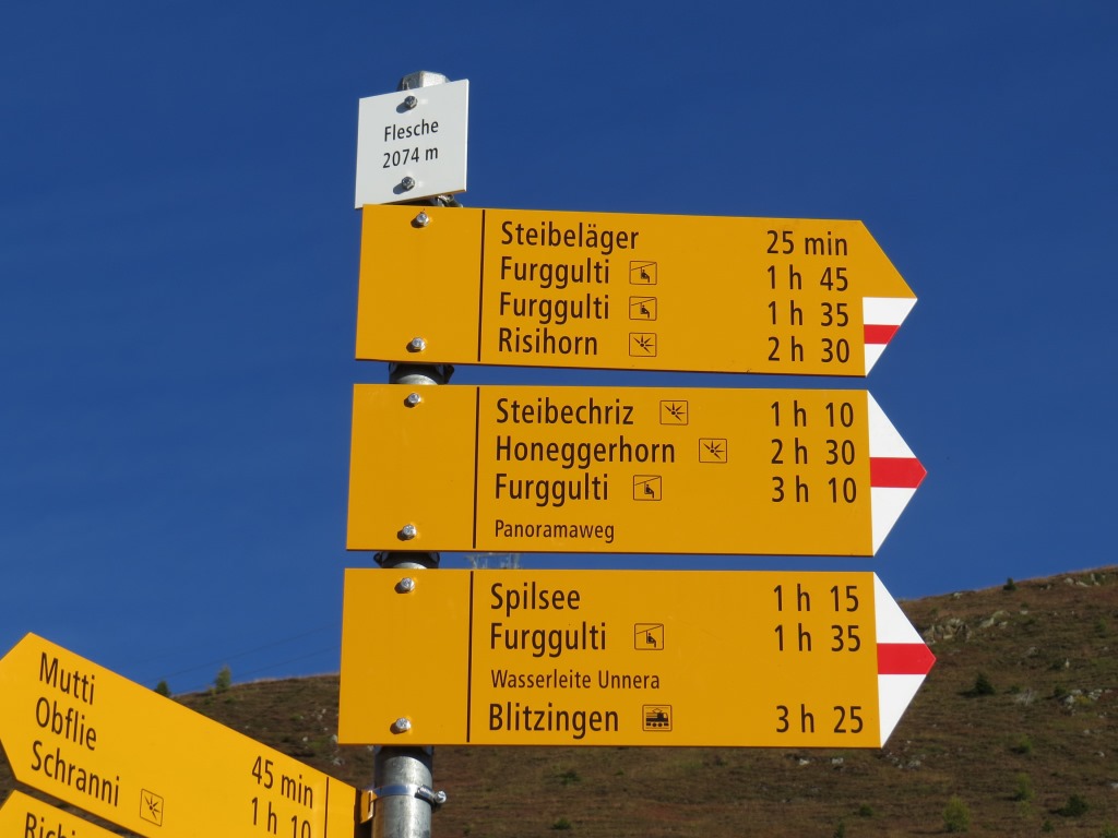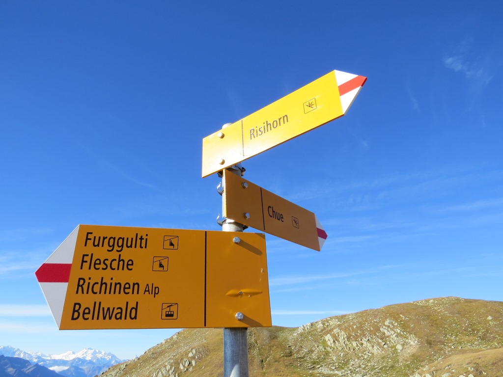 Wegweiser bei der Bergstation auf Furggulti 2581 m.ü.M.