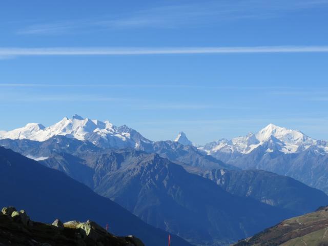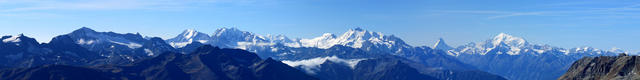 was für ein Breitbildfoto! Fletschhorn, Lagginhorn, Allalinhorn, Albhubel, Dom, Mischabel-Massiv, Balfrin, Matterhorn, Weisshor