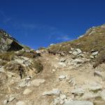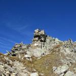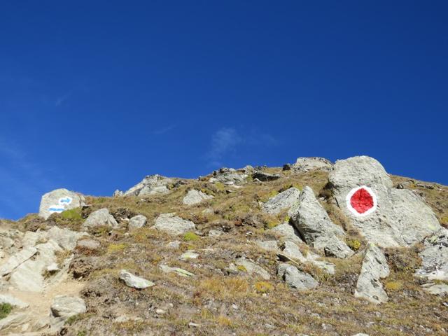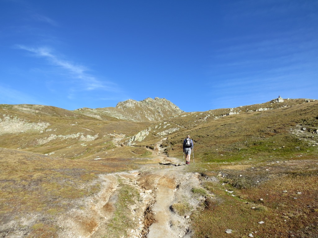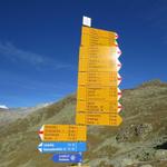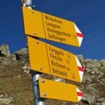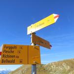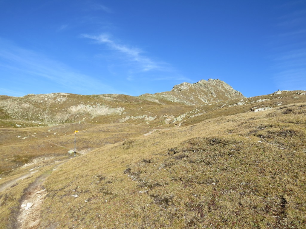 beim Wegweiser in der Senke von Furggulti Punkt 2599 m.ü.M. Es geht hinauf nach Chue