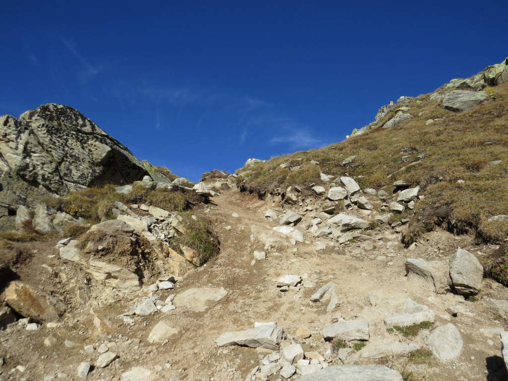 wir erreichen die Weggabelung bei Punkt 2736 m.ü.M.