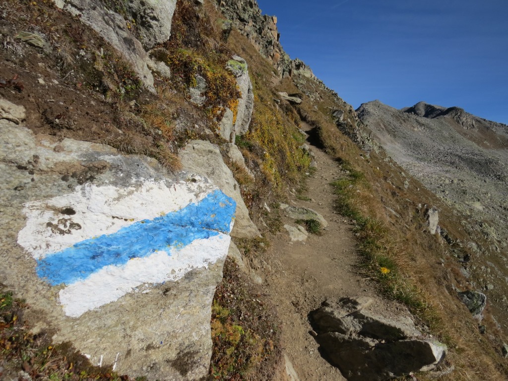 beim Gipfelaufbau wird der Bergweg nun weiss-blau-weiss